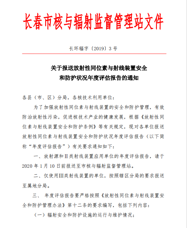 关于报送放射性同位素与射线装置安全和防护状况年度评估报告的通知