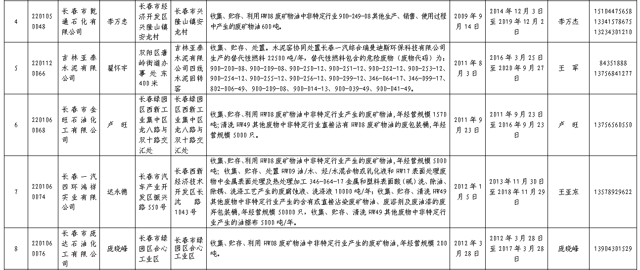 吉林省危险废物经营许可证持证企业名单(2016年6月更新)