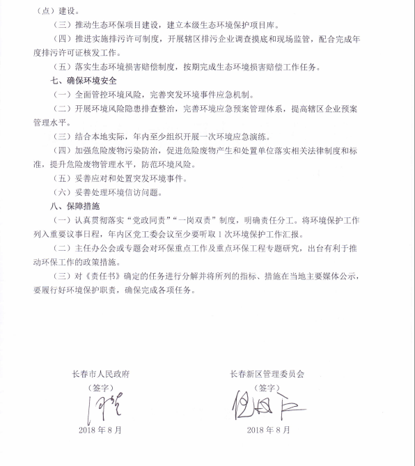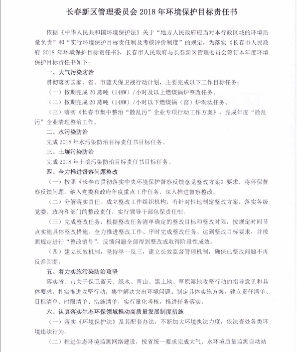 高新区管委会2018年环保目标责任书