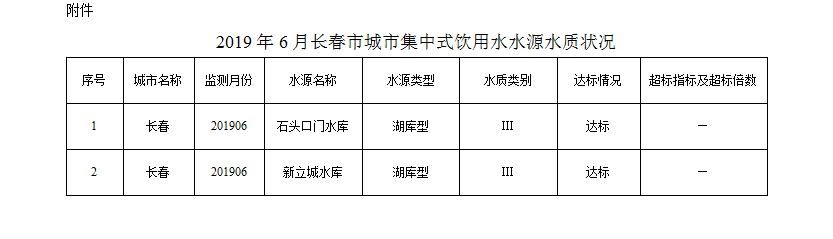 2019年5月,两个在用集中式饮用水水源水质均达到地表水Ⅲ类标准,达标率100%。