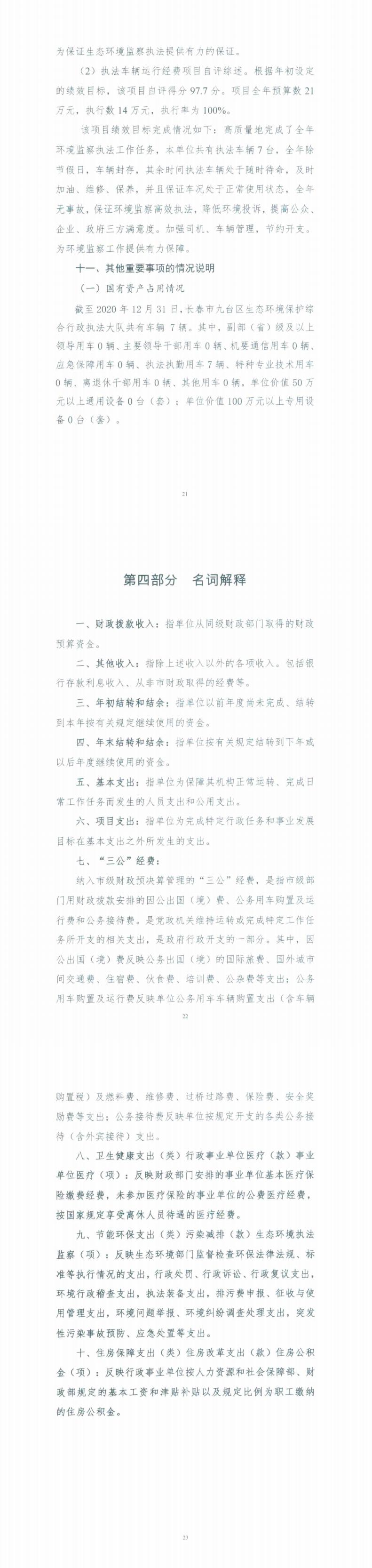 2020年度网赌平台九台区生态环境保护综合行政执法大队部门决算