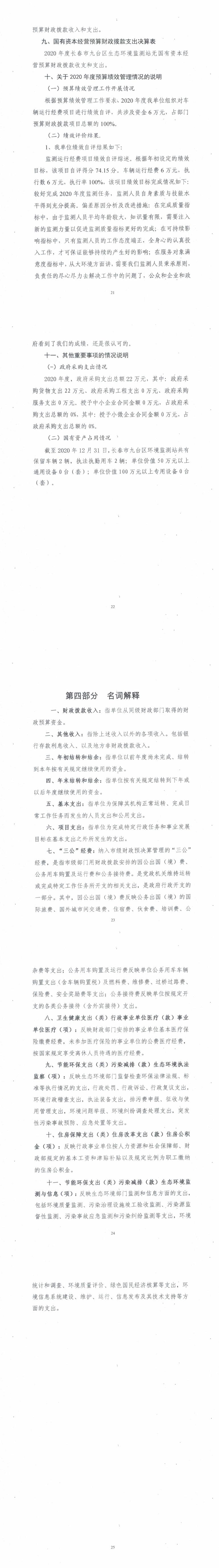 2020年网赌平台九台区生态环境监测站部门决算
