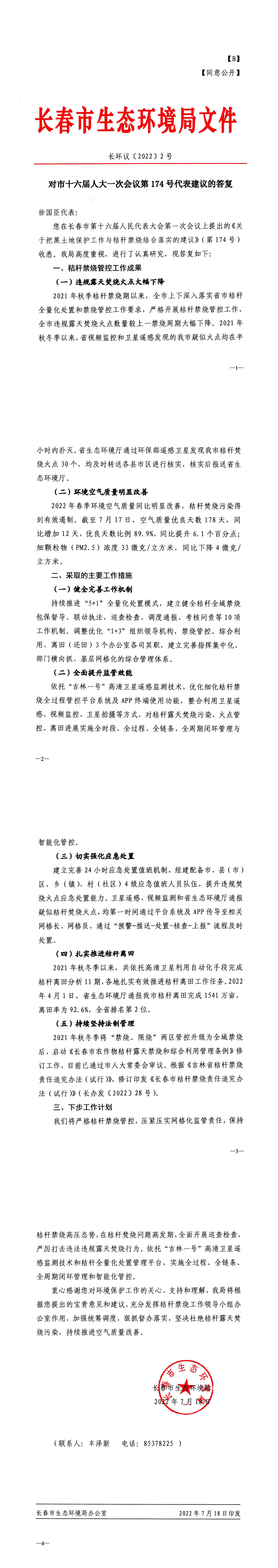 对市十六届人大一次会议第174号代表建议的答复