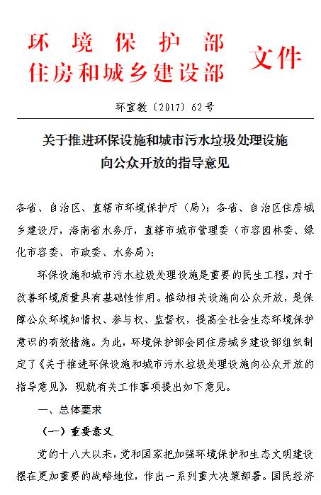关于推进环保设施和城市污水垃圾处理设施向公众开放的指导意见