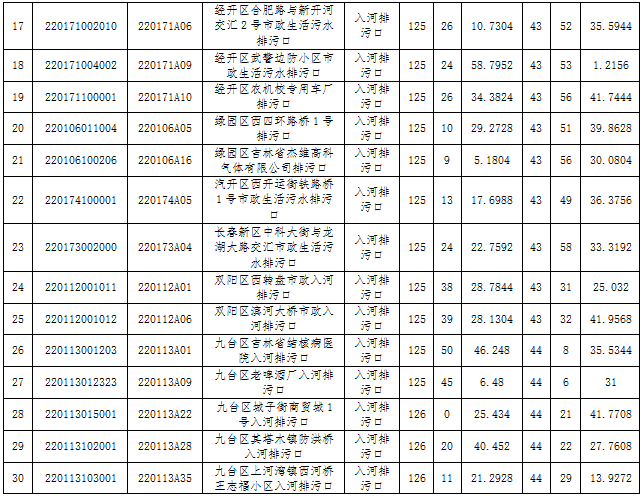 按照《国务院开展第二次全国污染源普查的通知》(国发〔2016〕59号)、《第二次全国污染源普查方案》(国办发〔2017〕82号)和《关于开展第二次全国污染源普查入河(海)排污口普查与监测工作的通知》(国污普〔2018〕4号)开展本次监测工作。本次入河(海)排污口为入河(海)排污口清查名录库中规模以上入河(海)排污口枯水期和丰水期的补充监测。总共挑选30个入河排污口进行监测,详细信息见表1。