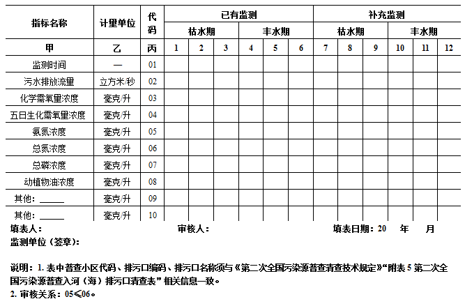 第二次全国污染源普查入河(海)排污口监测表