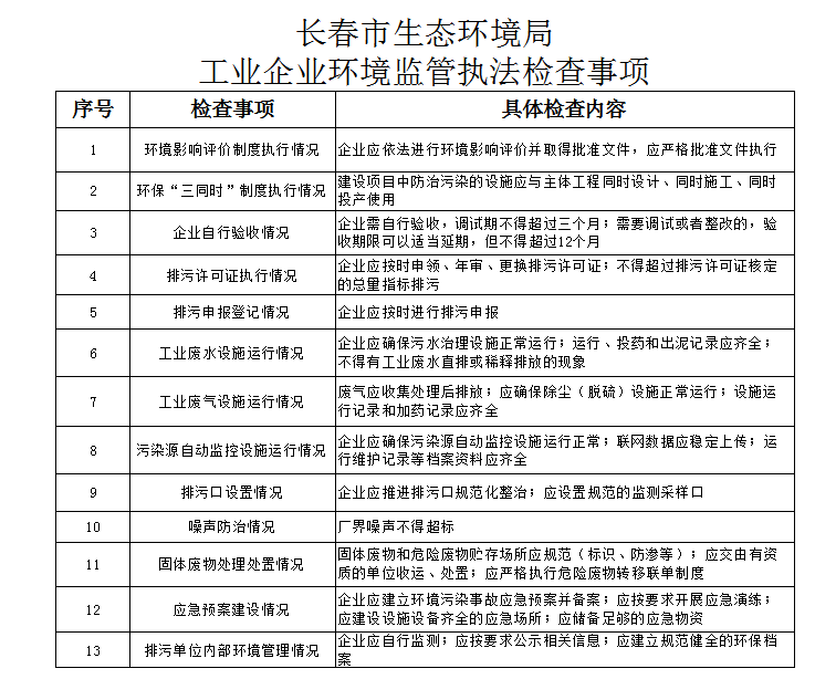 为进一步提升环境监管执法能效,切实规范并统一检查标准,便于企业强化内部管理和自查自纠,现对环境执法部门环境监管执法检查相关事项通告如下: