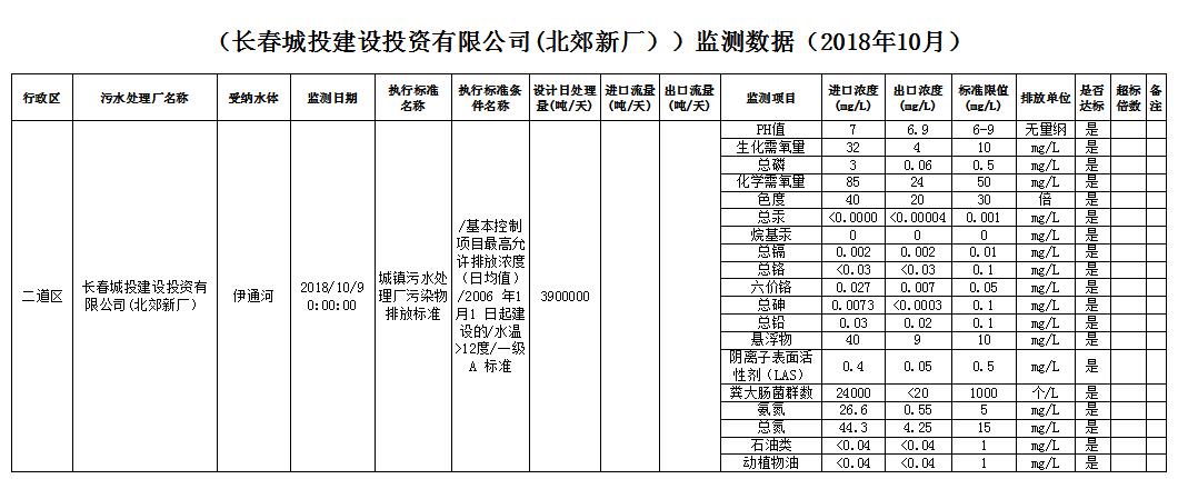 (长春城投建设投资有限公司(北郊新厂))监测数据(2018年10月)