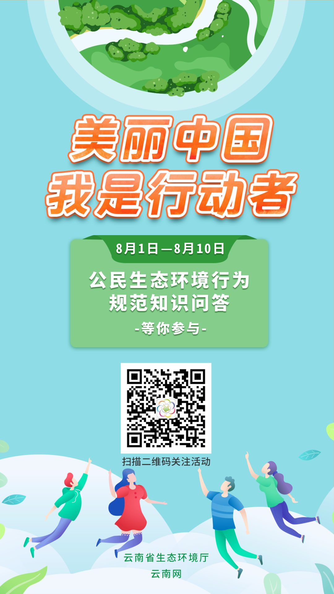 为倡导简约适度、绿色低碳的生活方式,引领公民践行生态环境责任,携手共建天蓝、地绿、水清的美丽中国,云南省生态环境厅推出“公民生态环境行为规范知识问答”有奖互动活动,通过在线答题形式,强化公民生态环境意识,助推云南建设成为全国生态文明建设排头兵和中国最美丽省份。