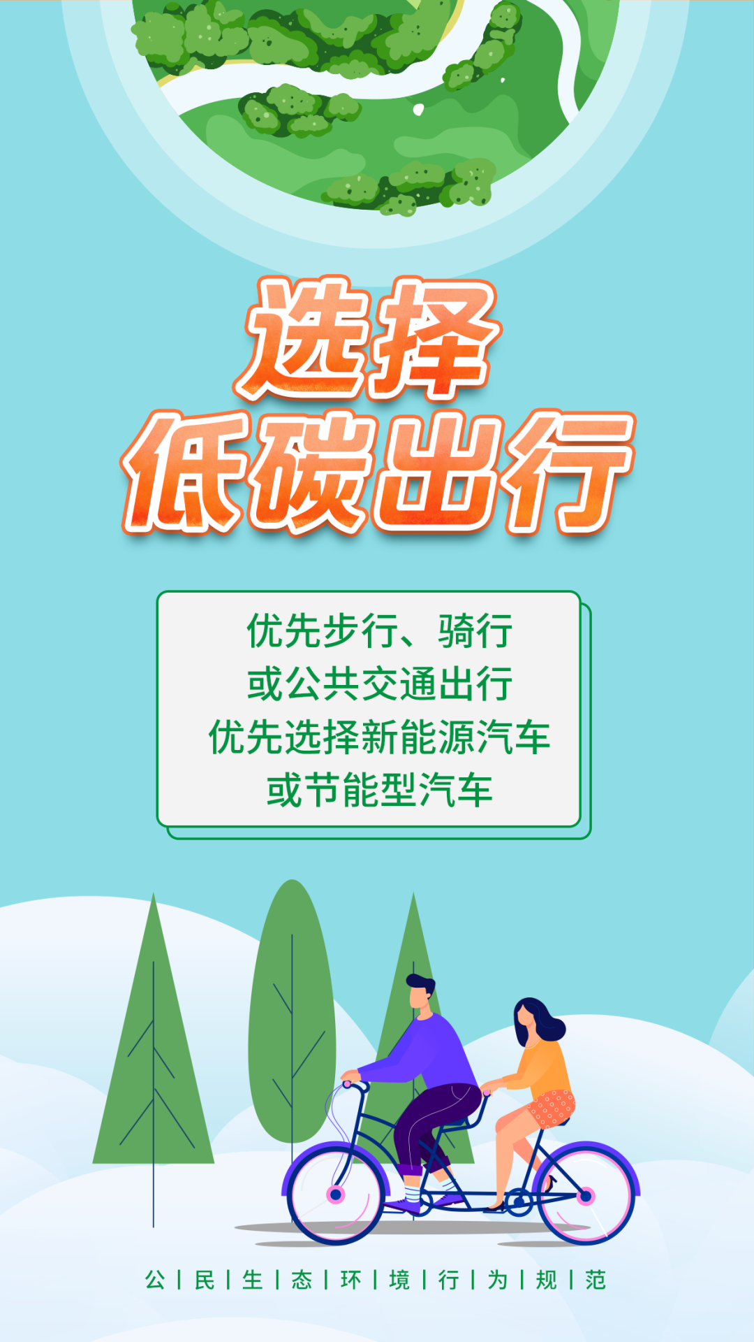第四条 选择低碳出行。优先步行、骑行或公共交通出行,多使用共享交通工具,家庭用车优先选择新能源汽车或节能型汽车。