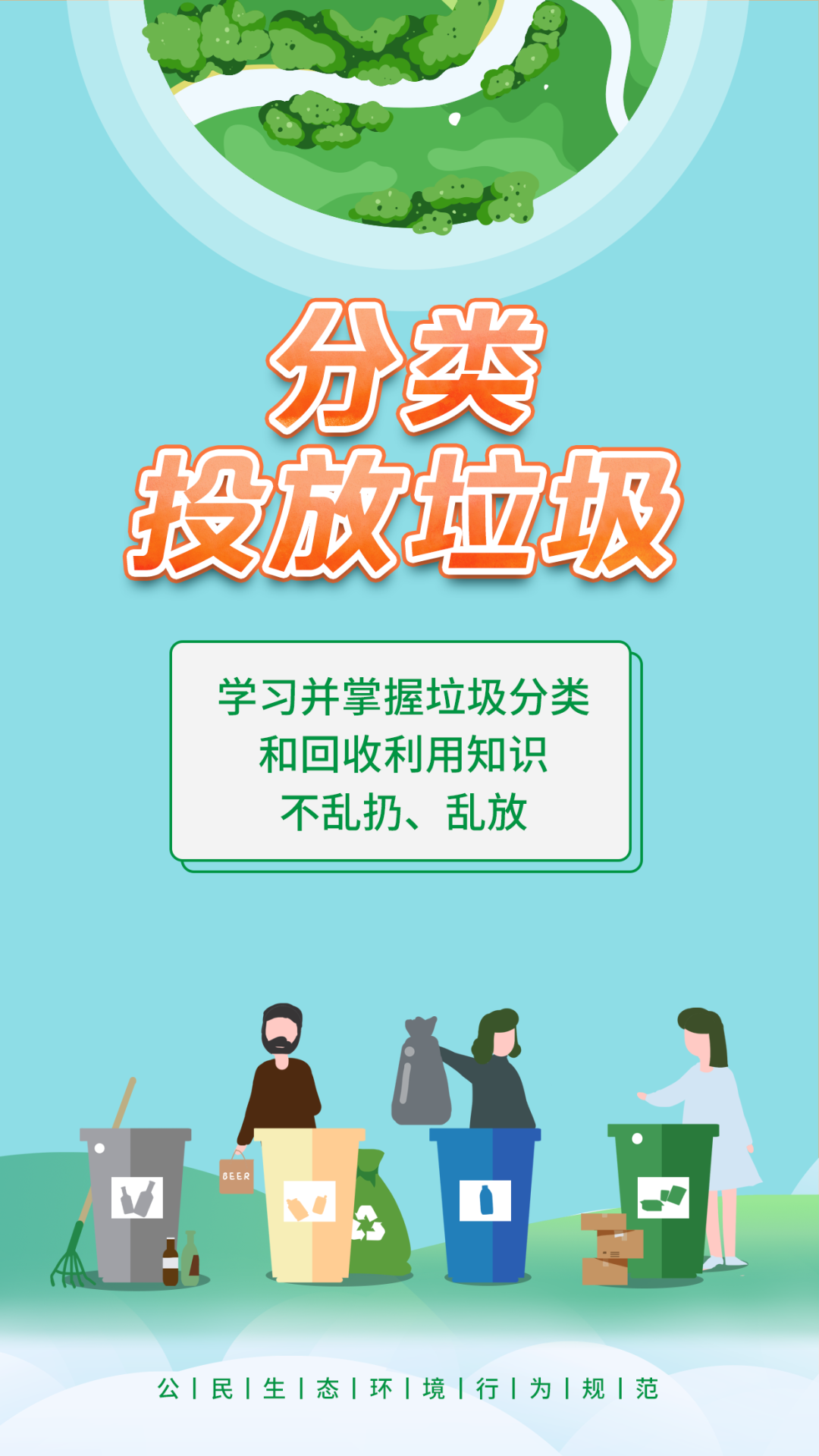 第五条 分类投放垃圾。学习并掌握垃圾分类和回收利用知识,按标志单独投放有害垃圾,分类投放其他生活垃圾,不乱扔、乱放。