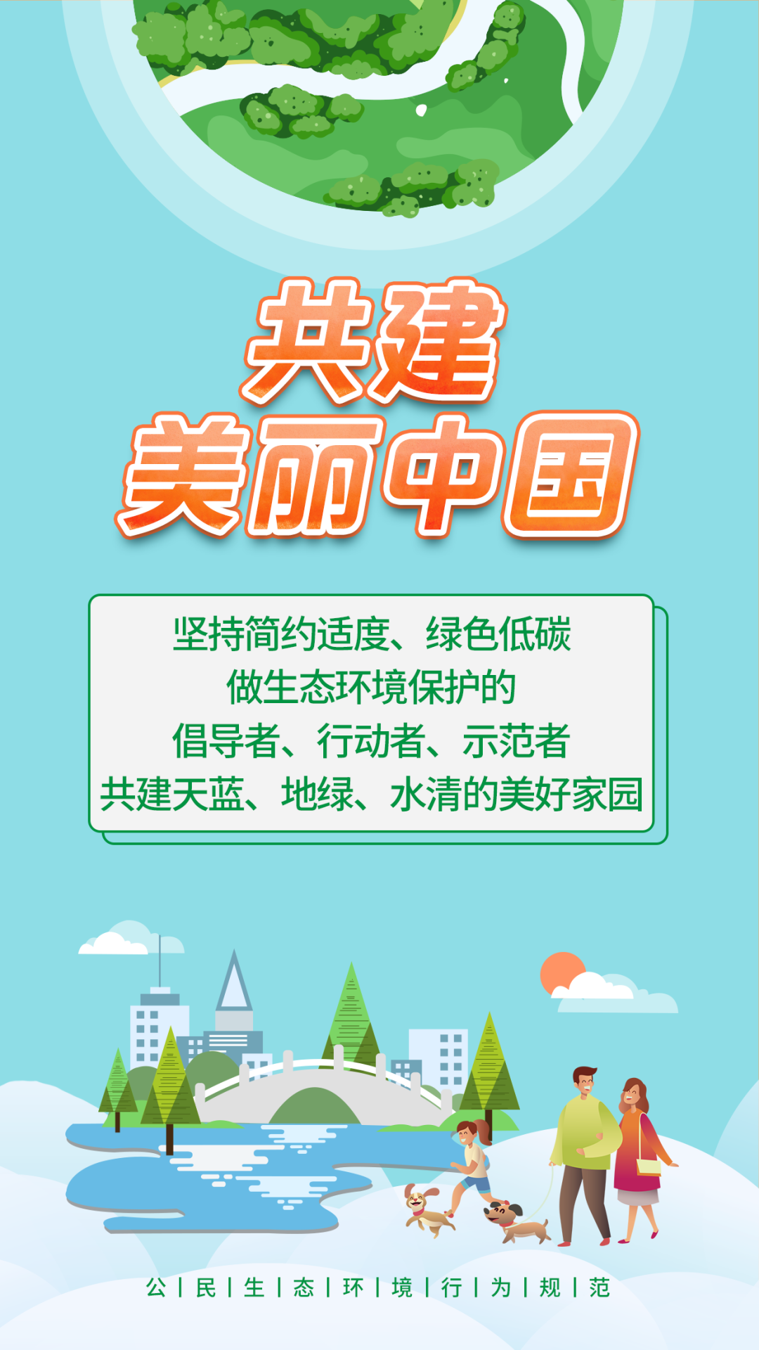 第十条 共建美丽中国。坚持简约适度、绿色低碳的生活与工作方式,自觉做生态环境保护的倡导者、行动者、示范者,共建天蓝、地绿、水清的美好家园。