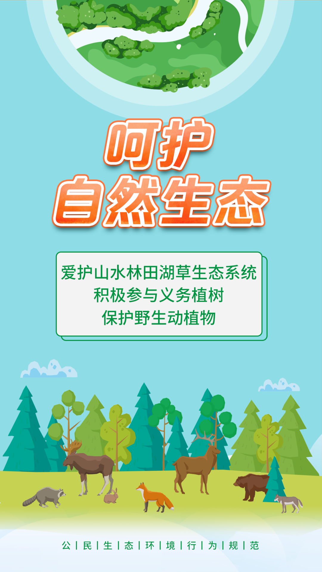 第七条 呵护自然生态。爱护山水林田湖草生态系统,积极参与义务植树,保护野生动植物,不破坏野生动植物栖息地,不随意进入自然保护区,不购买、不使用珍稀野生动植物制品,拒食珍稀野生动植物。