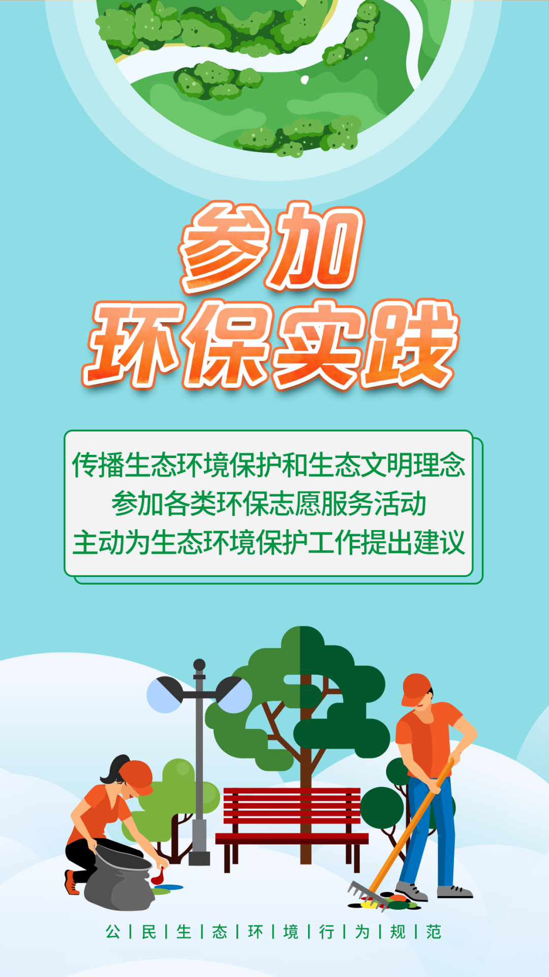 第八条 参加环保实践。积极传播生态环境保护和生态文明理念,参加各类环保志愿服务活动,主动为生态环境保护工作提出建议。