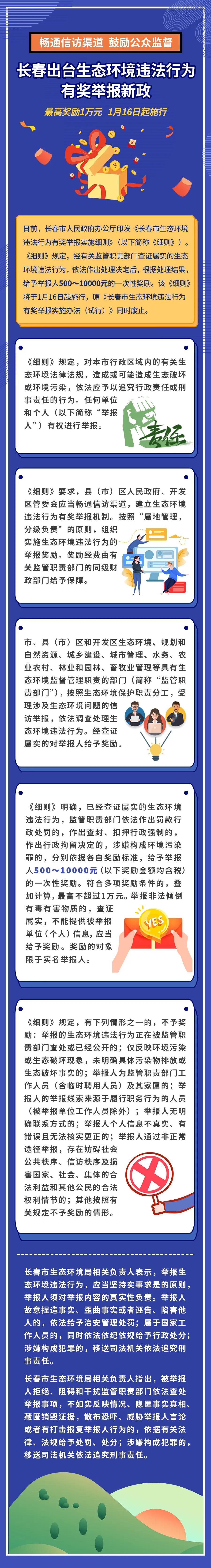 畅通信访渠道 鼓励公众监督丨长春出台生态环境违法行为有奖举报新政,最高奖励1万元,1月16日起施行