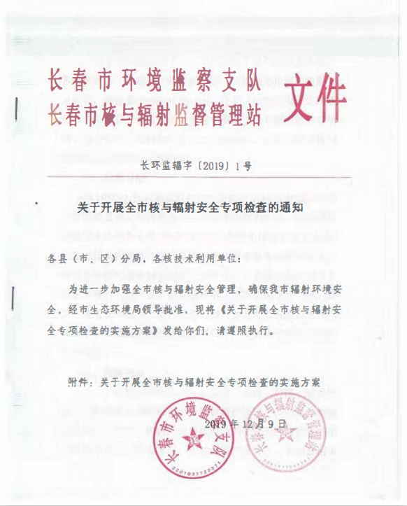 关于开展全市核与辐射安全检查的通知