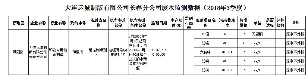 大连运城制版有限公司长春分公司废水监测数据(2018年3季度)