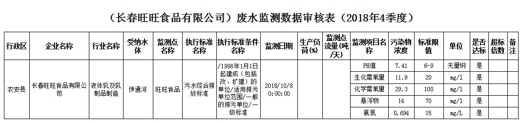 (长春旺旺食品有限公司)废水监测数据审核表(2018年4季度)