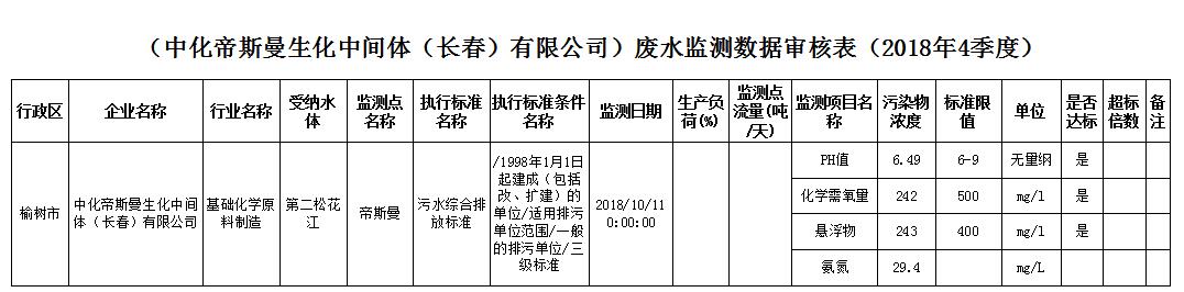 (中化帝斯曼生化中间体(长春)有限公司)废水监测数据审核表(2018年4季度)